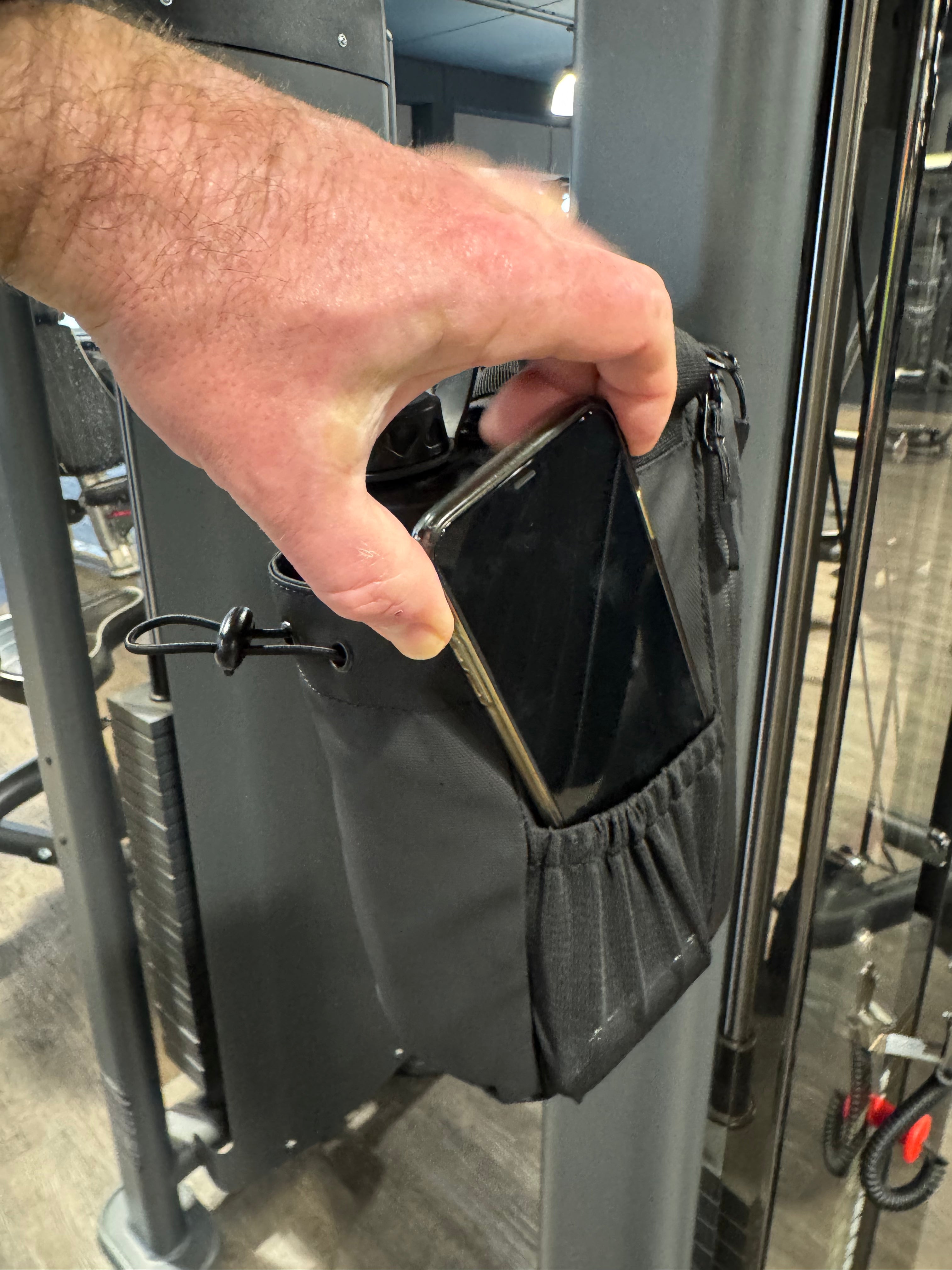 Kein Schleppen, kein Suchen – einfach trainieren. Deine Essentials sicher am Gerät befestigt!
